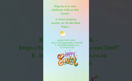 Easter Weekend special for direct bookings that are two days, or more, over the Easter Weekend. A treat will be hidden in the unit to be found by the guest.