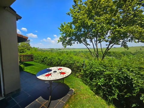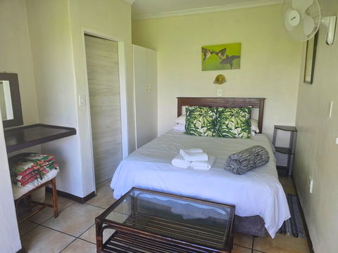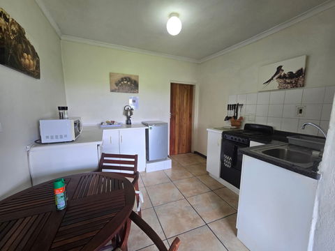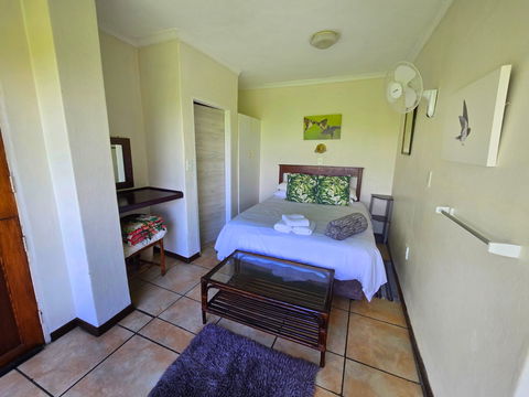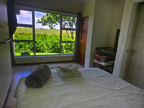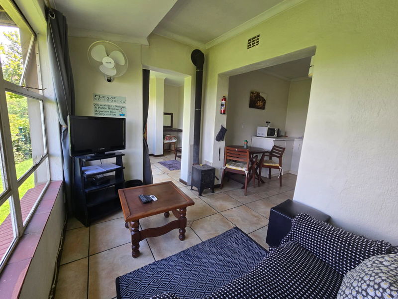 Discover a tranquil one-bedroom apartment with bay window views across the river. Designed for comfort and relaxation, it features a queen-size bed, ensuite shower, and a cozy lounge with fireplace and DSTV.